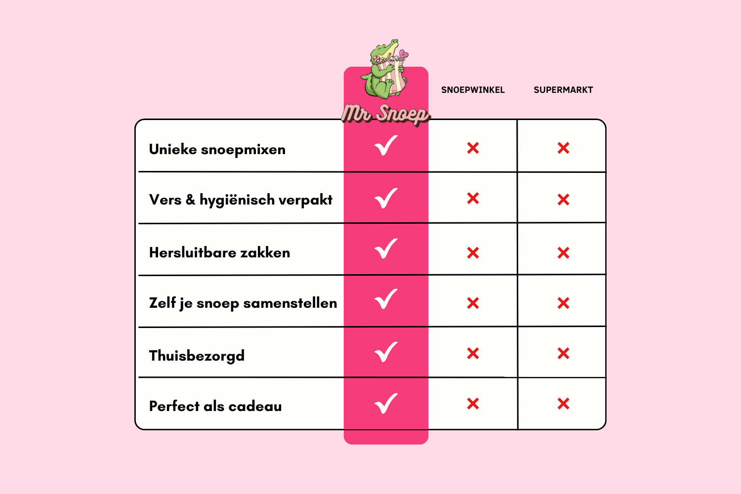 Bij Mr Snoep staat kwaliteit voorop. Elke mix wordt vers samengesteld en direct hygiënisch verpakt in hersluitbare zakken. Zo blijft je snoep perfect van smaak en textuur, precies zoals het hoort, gewoon bij jou thuisbezorgd.